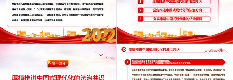 2022在法治軌道上全面建設社會主義現代化國家PPT紅色精美風黨員干部學習教育專題黨課黨建課件 Array