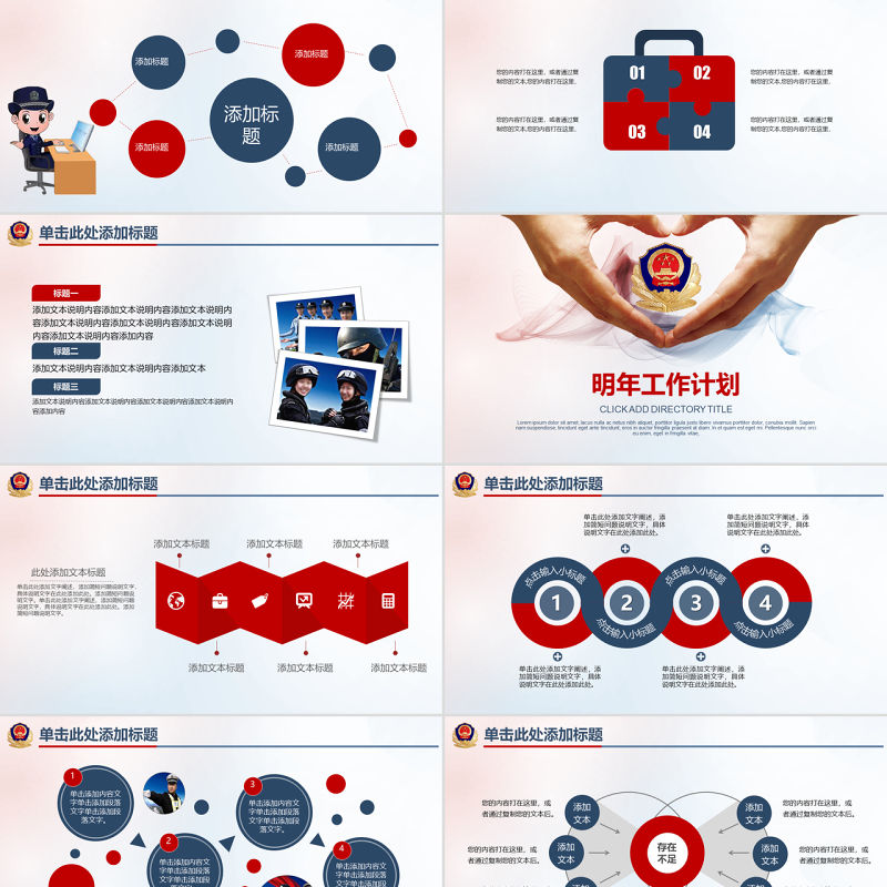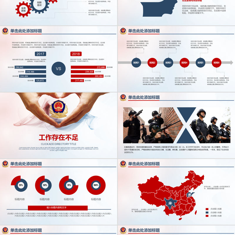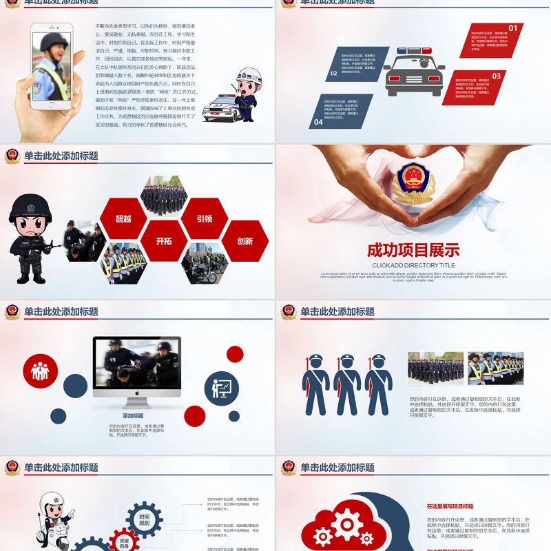 原創公安局警察交警隊特警派出所民警PPT模板-版權可商用