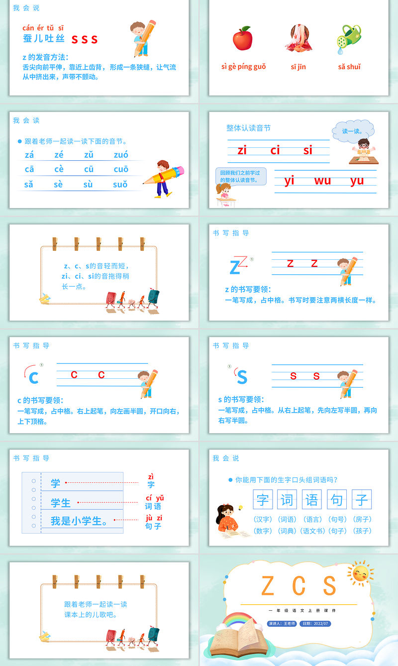 一年級(jí)語(yǔ)文上冊(cè)課件演講人:王老師日期:2022/07ZCS
