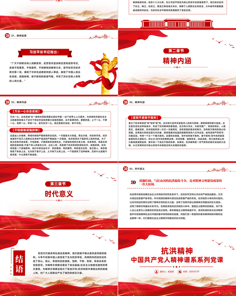 抗洪精神PPT紅色精美中國共產黨人精神譜系系列黨課 Array