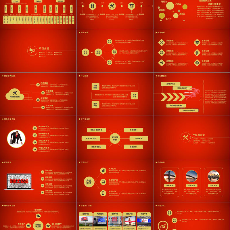 2021年紅金色大氣商業計劃書PPT模板
