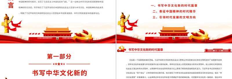 目 錄一、書寫中華文化新的時(shí)代篇章二、表征中國精神的時(shí)代精華三、引領(lǐng)時(shí)代發(fā)展的文明方向