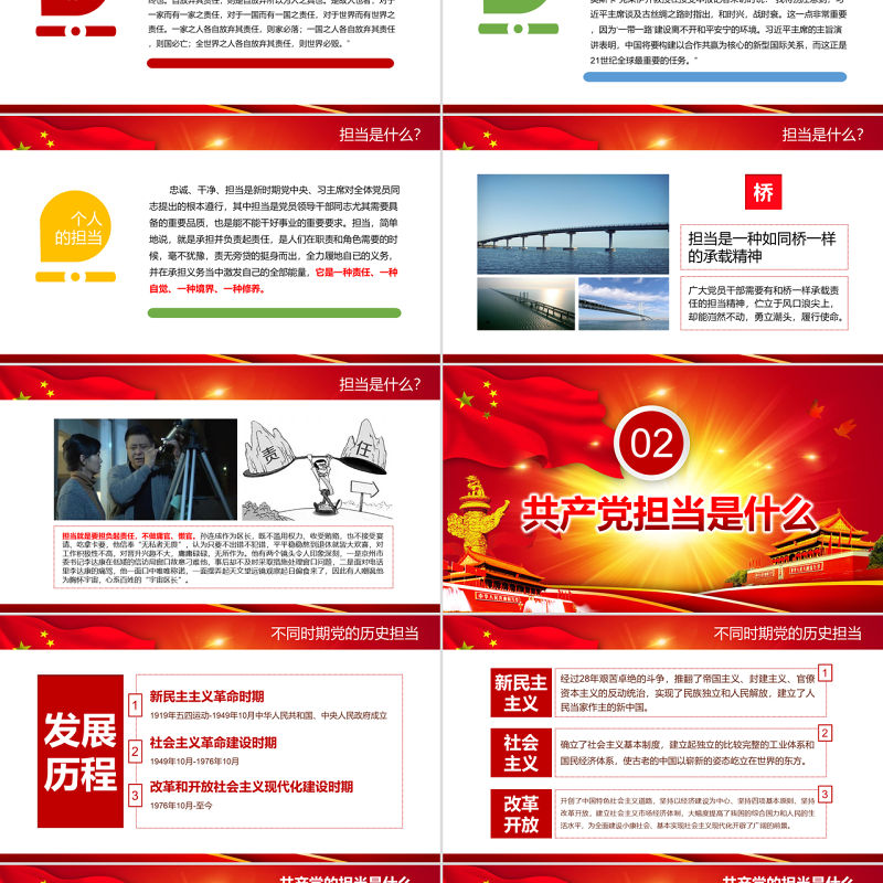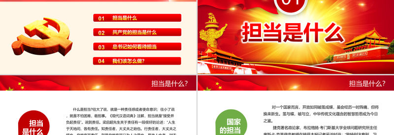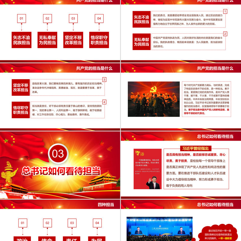 共產黨的擔當是什么矢志不渝民族擔當01無私奉獻為民擔當02堅定不移改革擔當03恪盡職守職責擔當04