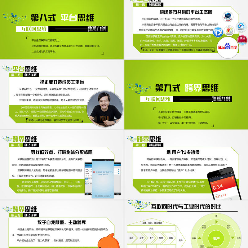 > 工作總結(jié)PPT > 《互聯(lián)網(wǎng)思維獨(dú)孤九劍》移動(dòng)互聯(lián)時(shí)代的思維革命ppt讀書筆記.PPTX 【圖片、文字、動(dòng)畫均可編輯】