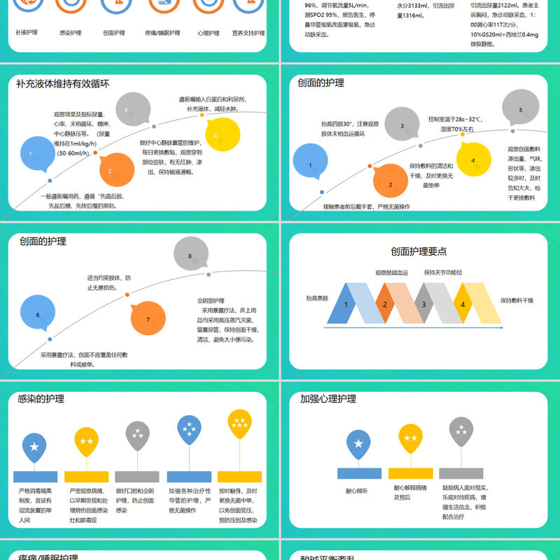 補液護理感染護理創面護理護理措施心理護理營養支持護理疼痛/睡眠護理