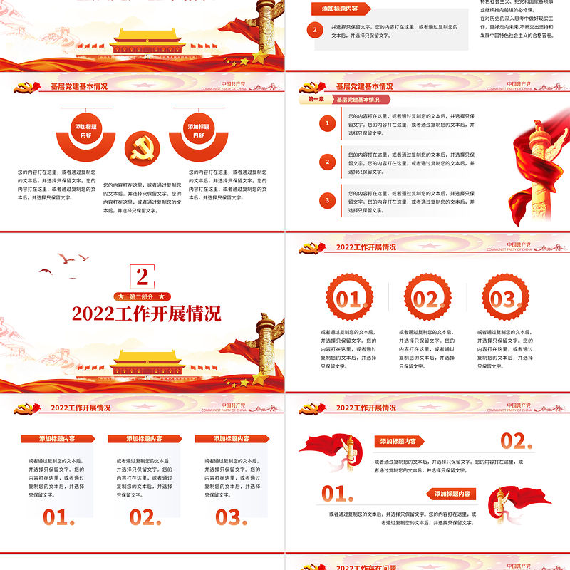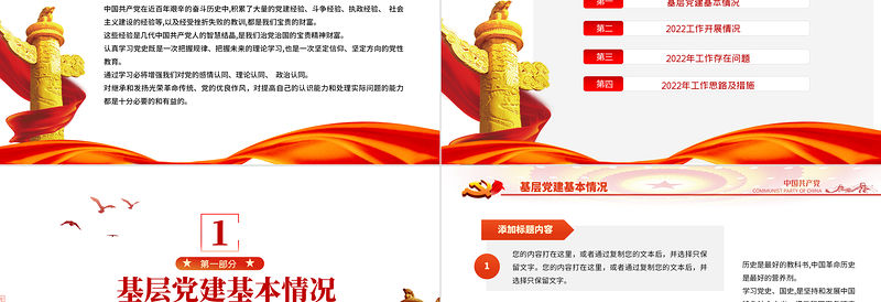 2022黨政黨建工作報告PPT紅金大氣黨政風黨員干部學習輔導微黨課課件 Array