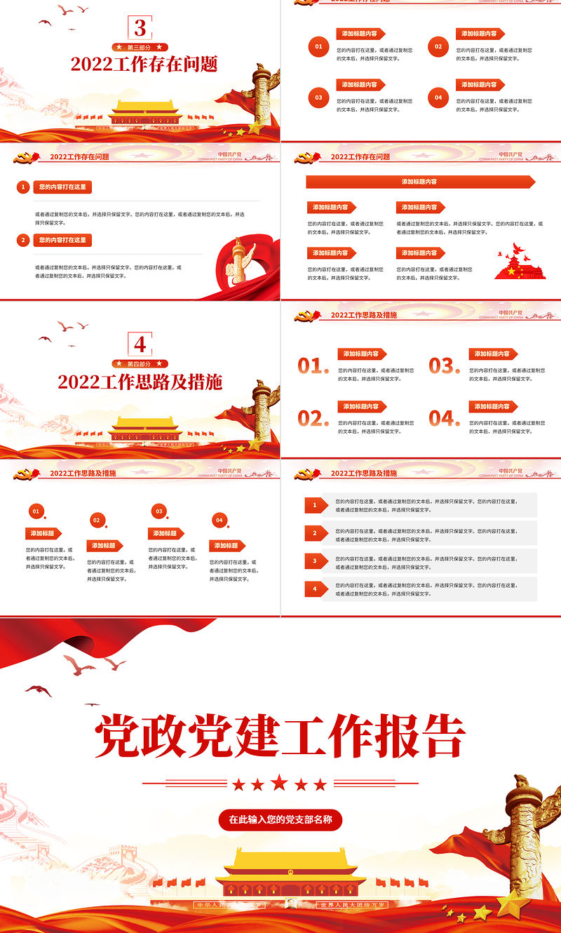 2022黨政黨建工作報告PPT紅金大氣黨政風黨員干部學習輔導微黨課課件