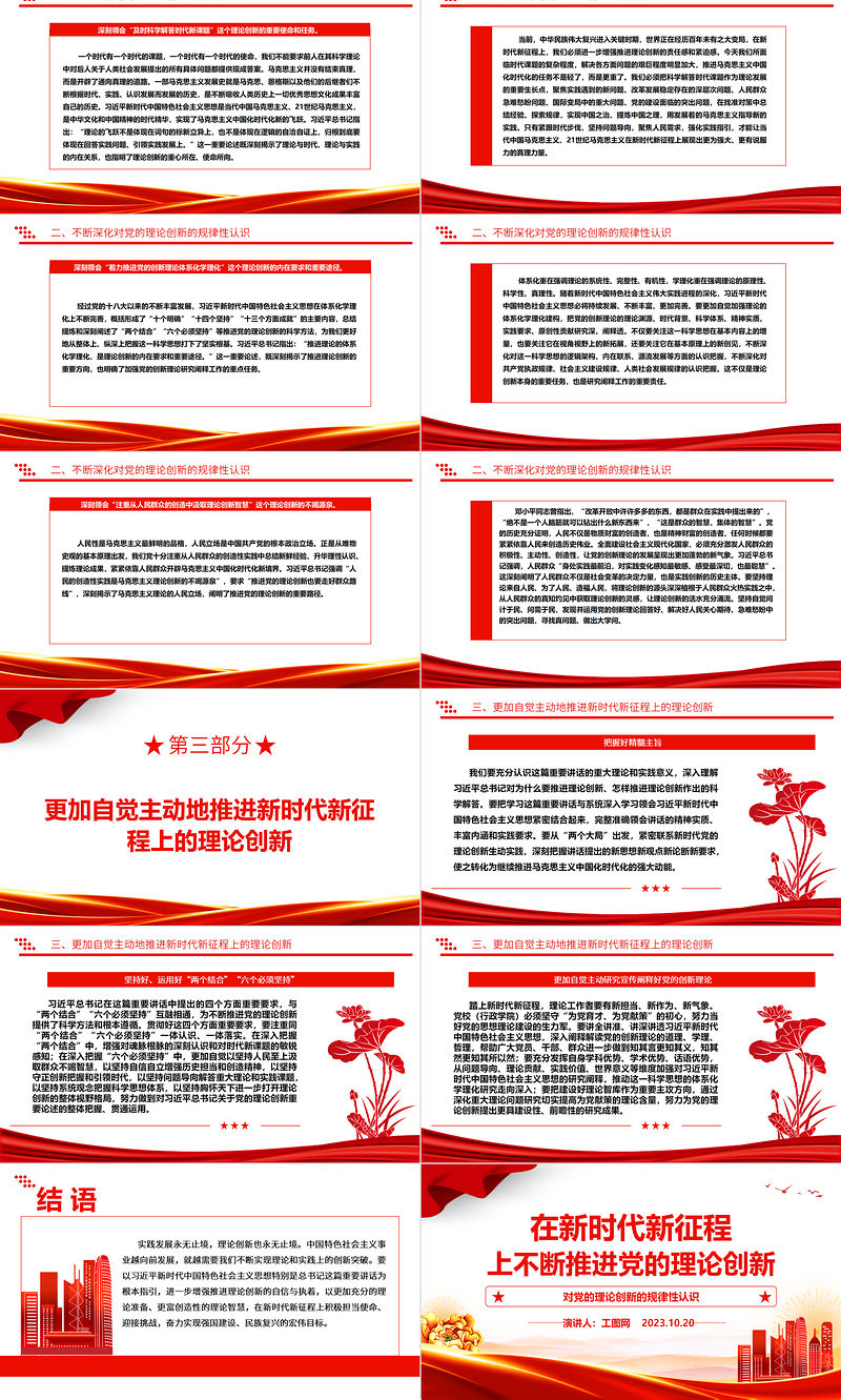 工圖網(wǎng)提供2023在新時(shí)代新征程上不斷推進(jìn)黨的理論創(chuàng)新ppt紅色大氣對(duì)黨的理論創(chuàng)新的規(guī)律性認(rèn)識(shí)廣大基層黨員黨組織培訓(xùn)黨課課件供會(huì)員免費(fèi)下載。更多精彩黨課PPT素材,盡在工圖網(wǎng)。