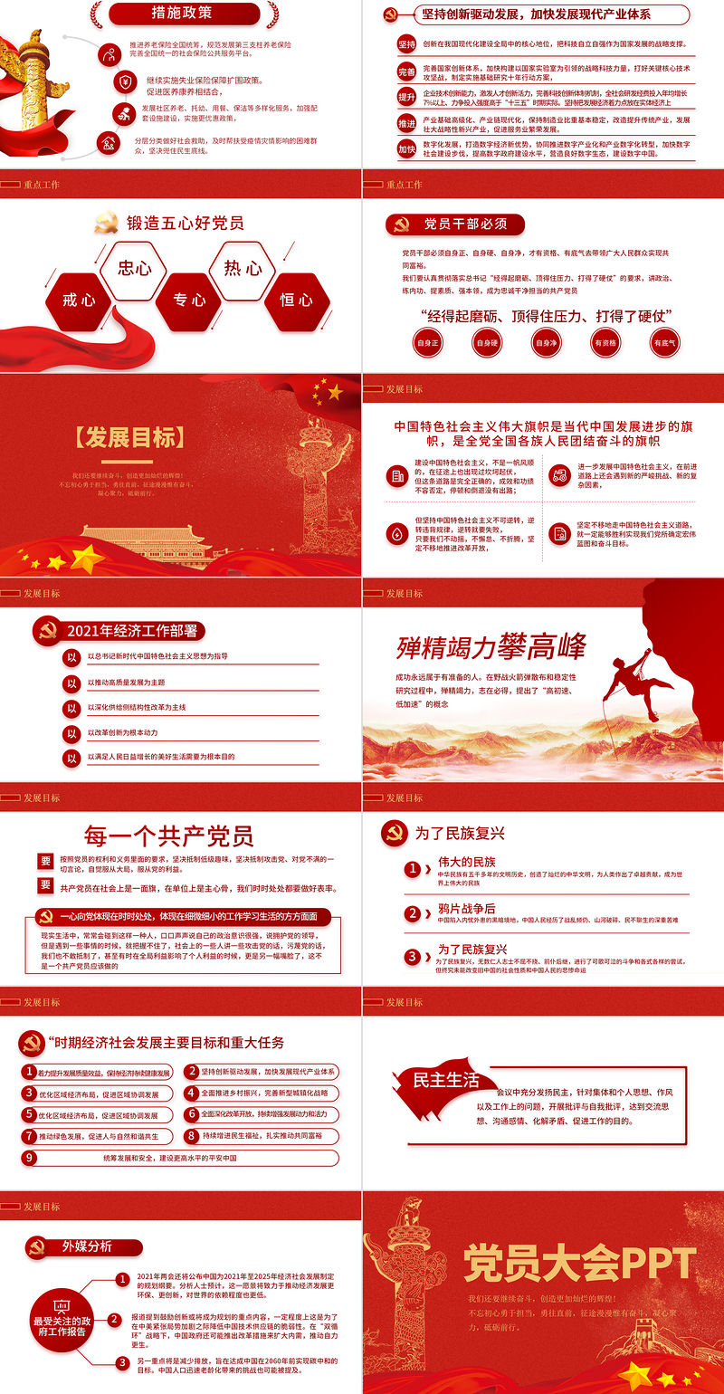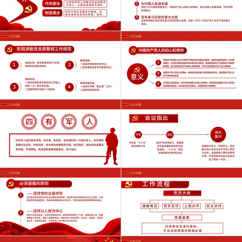 2022黨員大會年終工作總結PPT紅色黨政風黨支部黨組織年終黨員大會專題課件模板