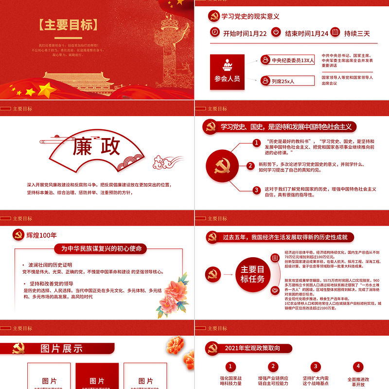 開始時間1月22結束時間1月24持續三天參會人員中央紀委委員13X人列席25x人中共中央總書記、國家主席、中央軍委主席出席全會并發表重要講話國家領導人等黨和國家領導人出席會議學習黨史的現實意義主要目標