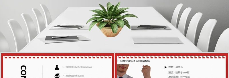 自我介紹/Self introduction姓名:稻殼兒人生格言-班級(jí):建筑學(xué)xxxx班政治面貌:共產(chǎn)黨員只有一條路不能選擇——那就是放棄的路;只有一條路不能拒絕——那就是成長(zhǎng)的路。