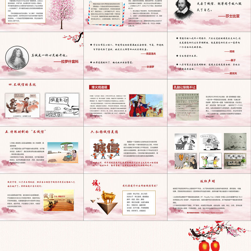 中國風誠信主題班會企業管理文化誠信贏天下動態企業培訓PPT模板