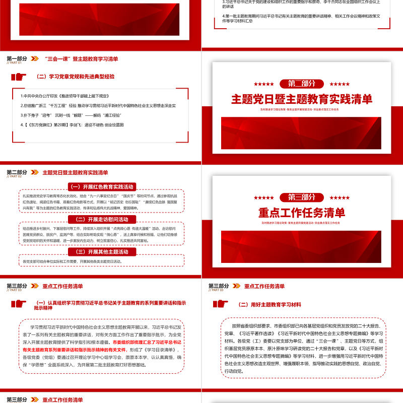第二批主題教育學習實踐任務清單PPT及時跟進學習理論政策聚焦主題開展黨建活動突出重點落實工作任務模板 Array