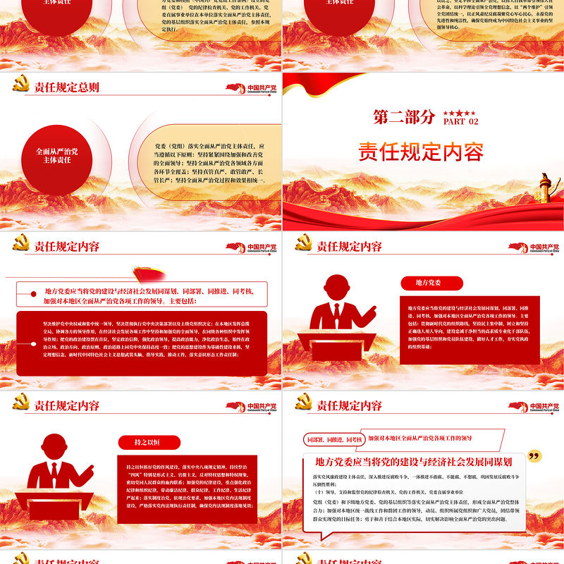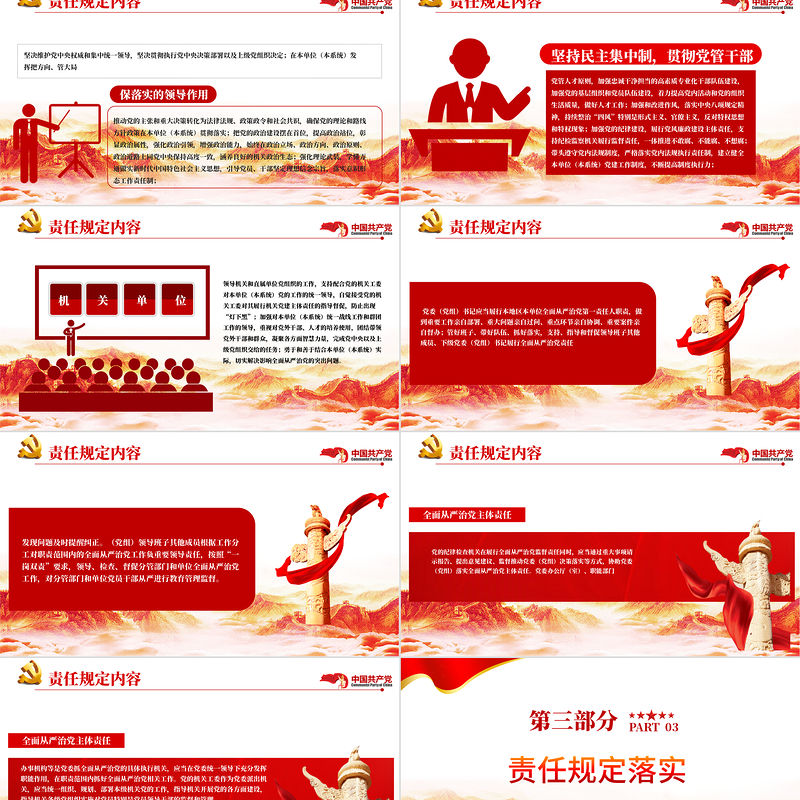 從嚴(yán)治黨主體責(zé)任推動(dòng)全面從嚴(yán)治黨向縱深發(fā)展PPT紅色大氣落實(shí)全面從嚴(yán)治黨主體責(zé)任規(guī)定專題黨課課件模板 Array