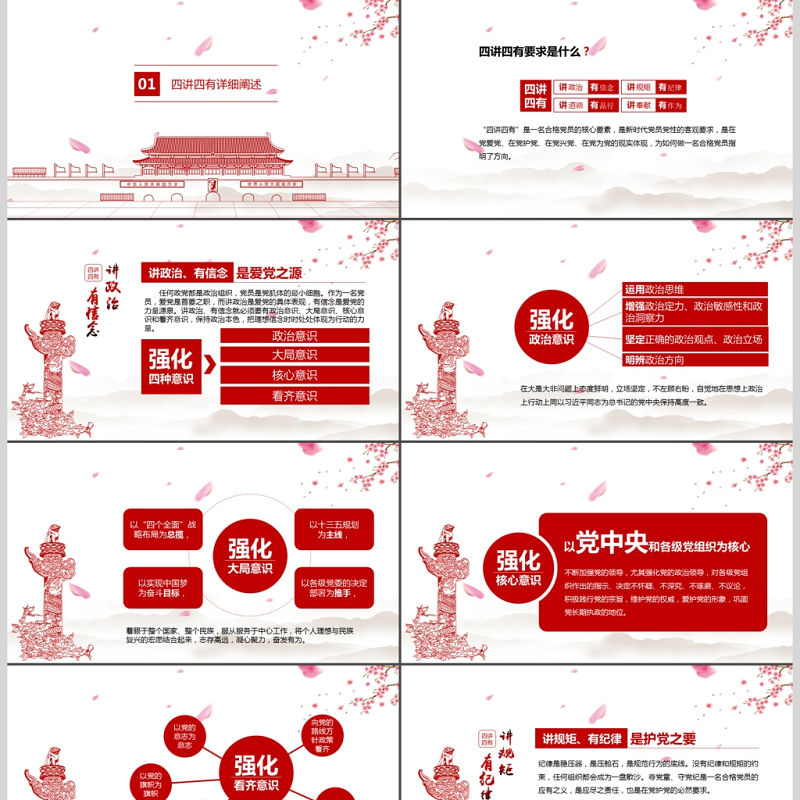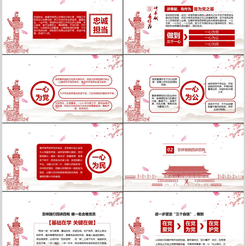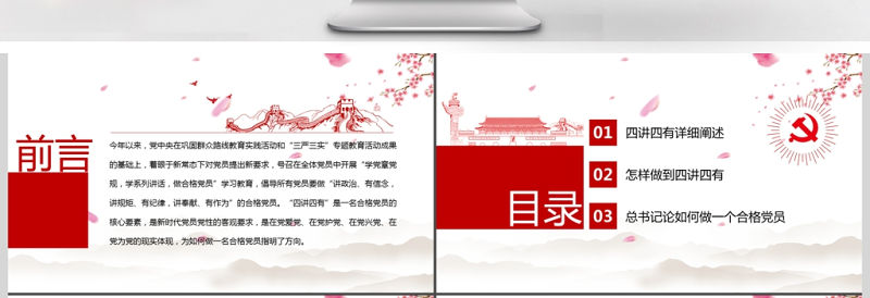 四講四有做合格黨員紅色大氣黨政PPT