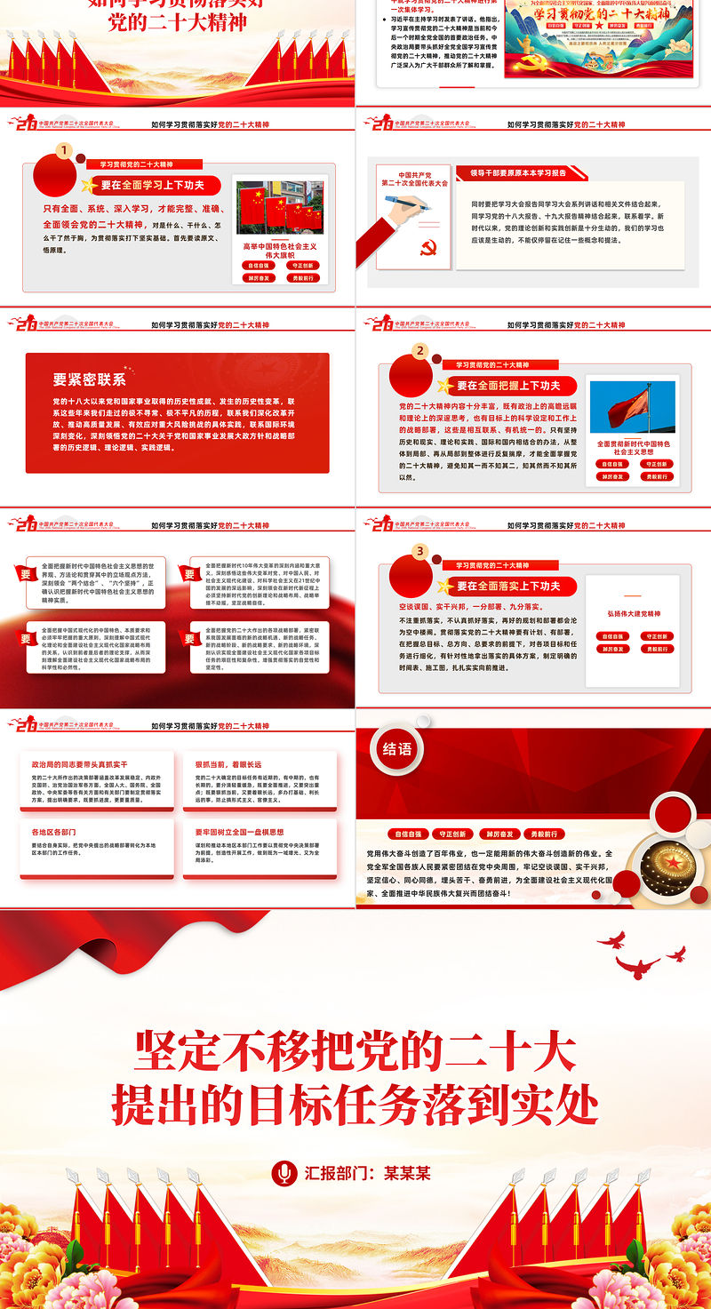 2022奮力奪取全面建設社會主義現代化國家新勝利PPT紅色黨政風支部學習落實貫徹黨的二十大精神黨課黨建課件模板 Array