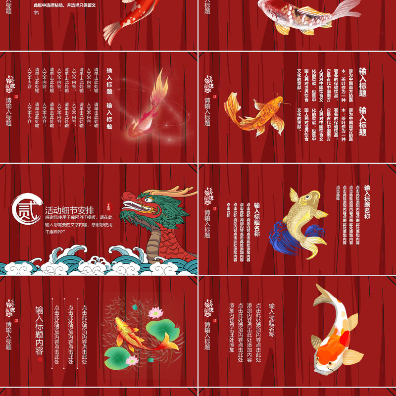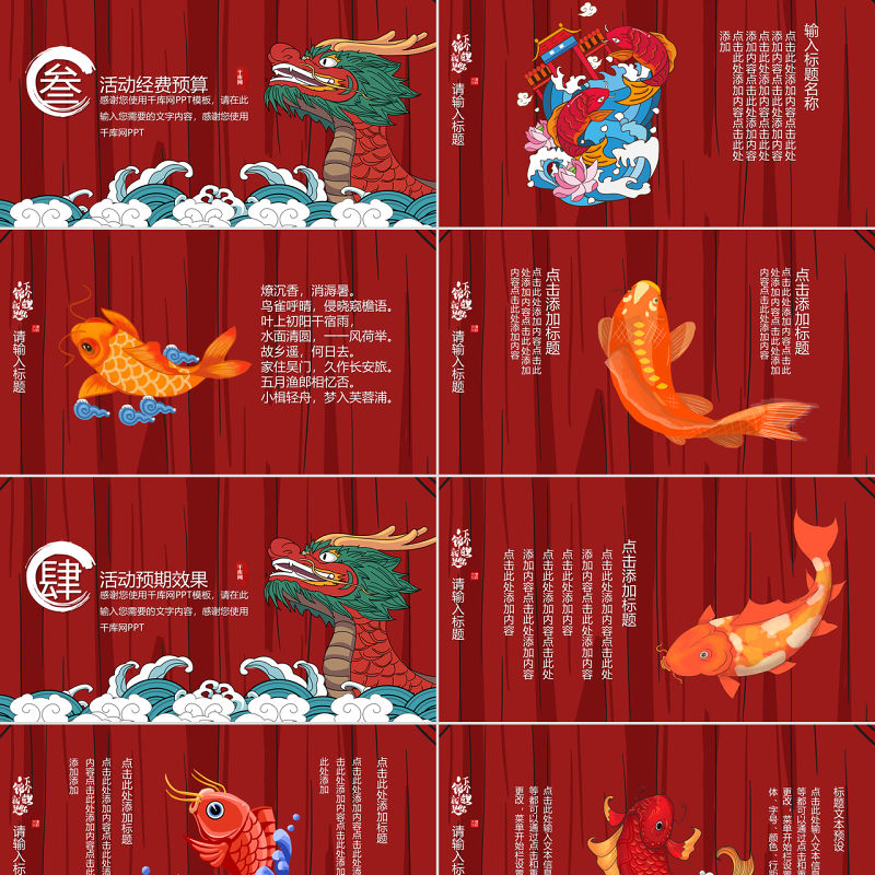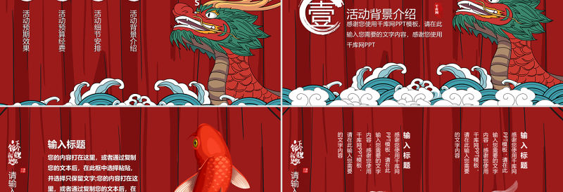 紅色好運錦鯉國潮龍活動策劃PPT模板