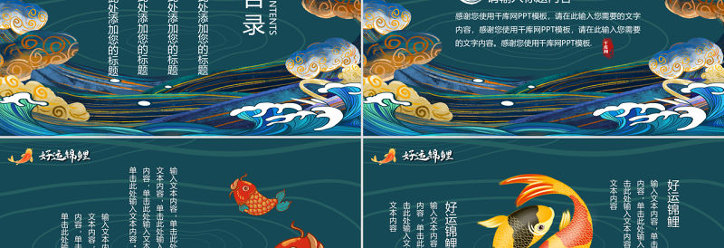 綠色,中國風,國潮,復古,古風,好運,中式,紅包,錦鯉,鯉魚,插畫風,手繪,通用,PPT,模板 Array