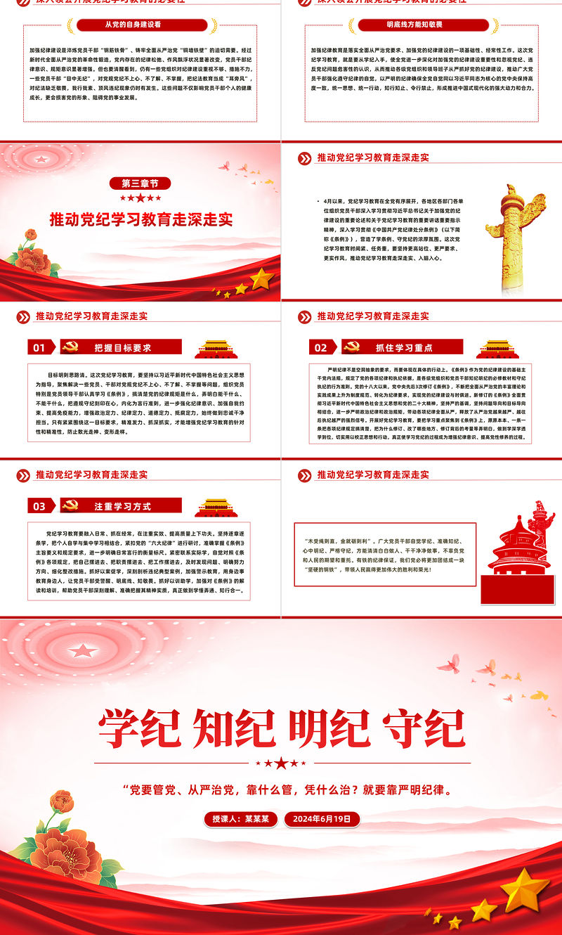紅色創意學紀知紀明紀守紀PPT全黨開展黨紀學習教育工作課件
