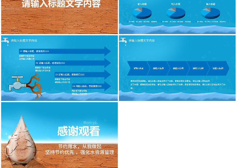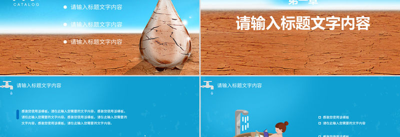 原創創意藍色立體世界水日宣傳PPT模板-版權可商用