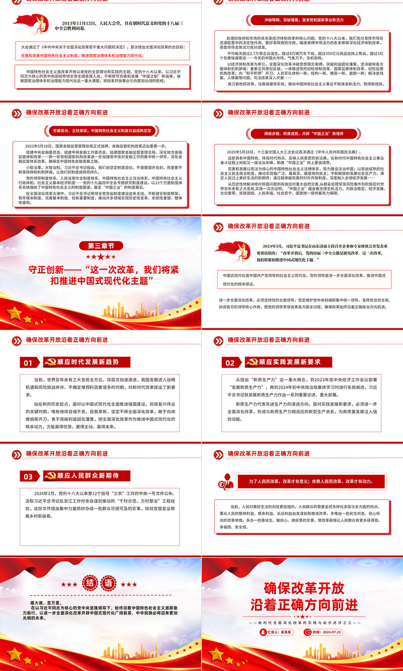 確保改革開放沿著正確方向前進PPT紅色大氣新時代全面深化改革的實踐與啟示述評之三 Array