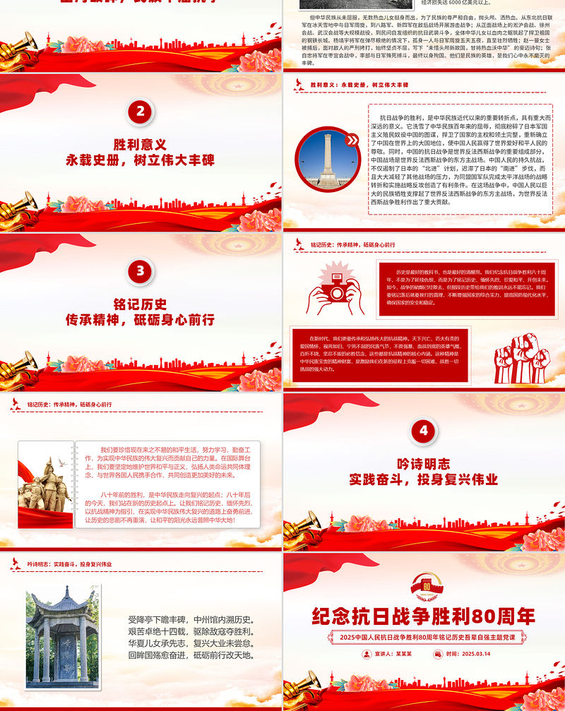 工圖網(wǎng)提供紀念抗日戰(zhàn)爭勝利80周年P(guān)PT銘記歷史吾輩自強主題黨課課件供會員免費下載。更多精彩黨課PPT素材,盡在工圖網(wǎng)。