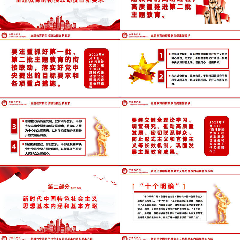 2023主題教育的銜接聯(lián)動提出新要求PPT紅色黨政風(fēng)學(xué)習(xí)貫徹新時代中國特色社會主義思想主題教育工作專題黨課課件模板下載 Array