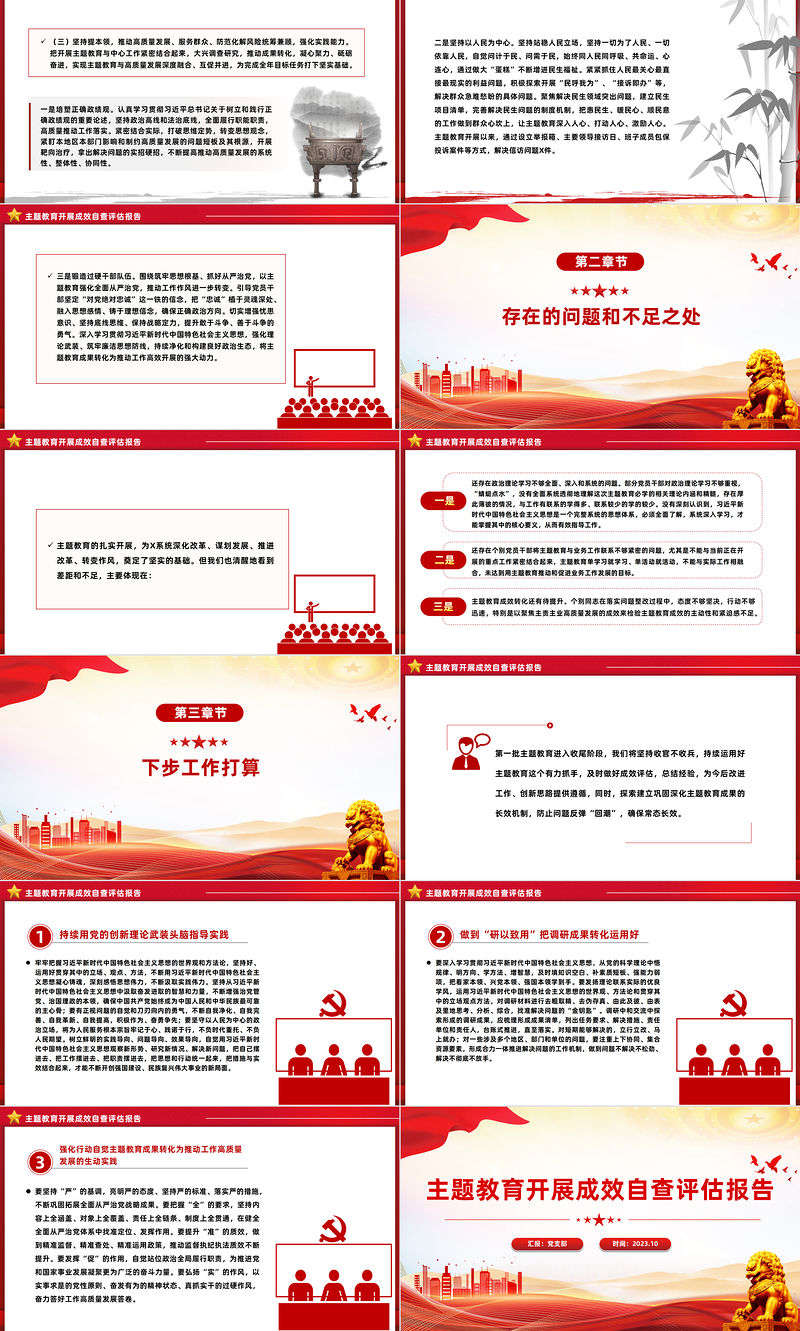 2023年主題教育開展成效自查報告PPT模板 Array