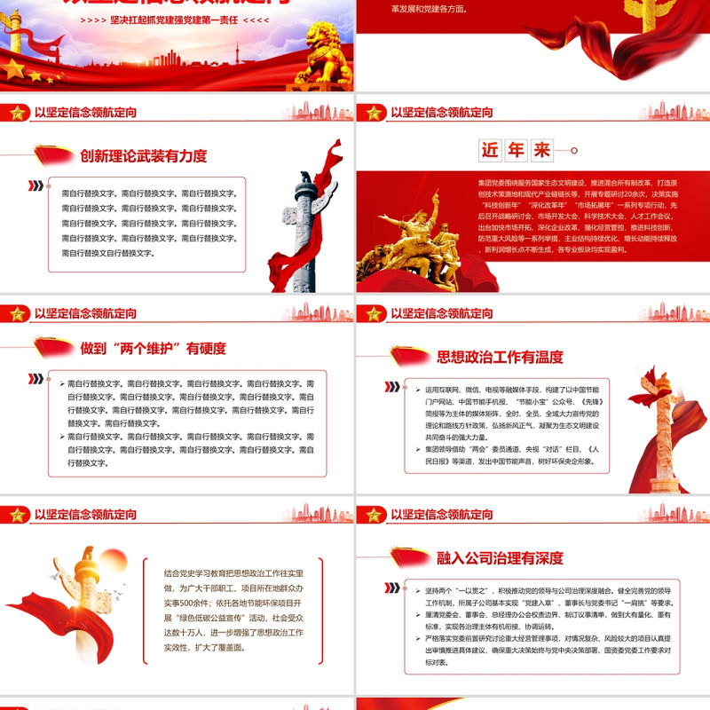 堅決扛起抓黨建強黨建第一責任PPT黨政風堅持以高質量黨建引領高質量發展專題黨課課件模板 Array