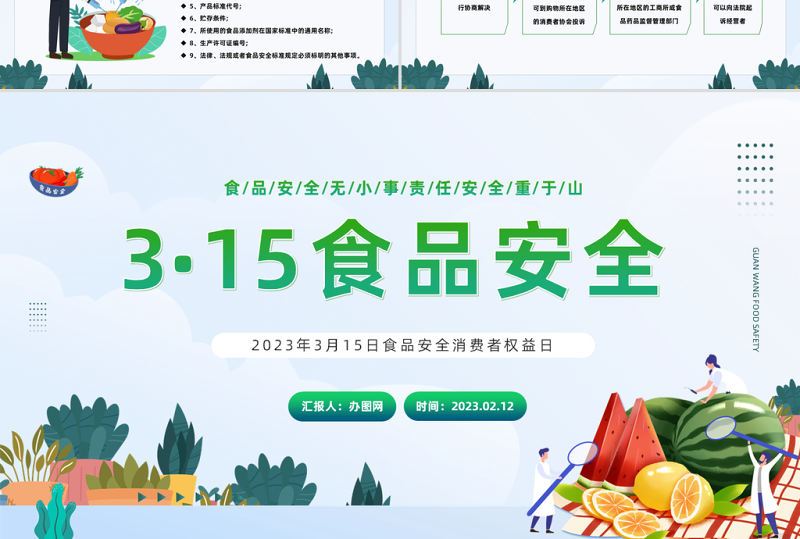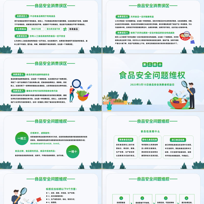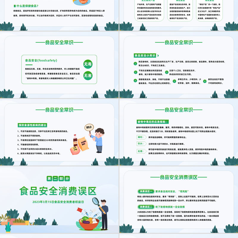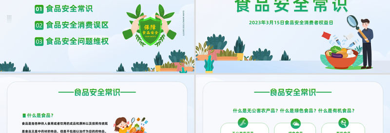 匯報|報告PPT > 2023食品安全日PPT綠色卡通風食品安全消費者權益日知識介紹課件模板下載.PPTX