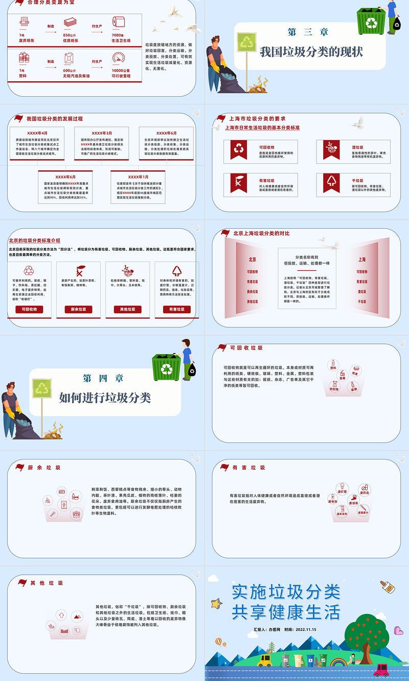 匯報|報告PPT > 2022實施垃圾分類共享健康生活PPT卡通風保護環境實施垃圾分類共享健康生活公益宣傳主題教育課件模板.PPTX