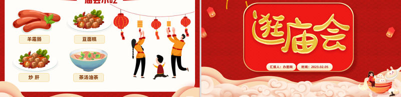 2023逛廟會(huì)PPT喜慶中國(guó)風(fēng)兔年新春廟會(huì)知識(shí)介紹課件模板 Array