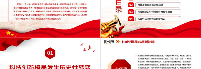目錄010203科技創(chuàng)新格局發(fā)生歷史性轉(zhuǎn)變科技發(fā)展取得歷史性成就科技創(chuàng)新的引領(lǐng)帶動作用顯著增強04完善科技體制釋放創(chuàng)新動力