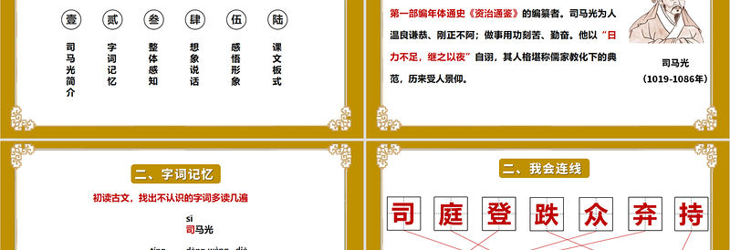 目錄壹貳叁肆伍司馬光簡介字詞記憶整體感知想象說話感悟形象
