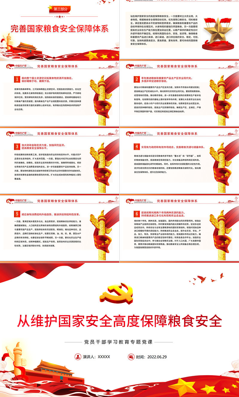 工圖網提供從維護國家安全高度保障糧食安全PPT黨政風黨員干部學習教育專題黨課課件供會員免費下載。更多精彩黨課PPT素材,盡在工圖網。