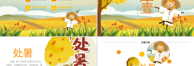 節氣 豐收節 豐收 收獲 季節 可愛 卡通 深秋 中秋PPT 秋天PPT 清新 田園 幼兒園 小學 稻草人 小清新 秋天 模板 邂逅 PPT動態 金秋 秋季 二十四節氣 處暑 處暑節氣 傳統 Array