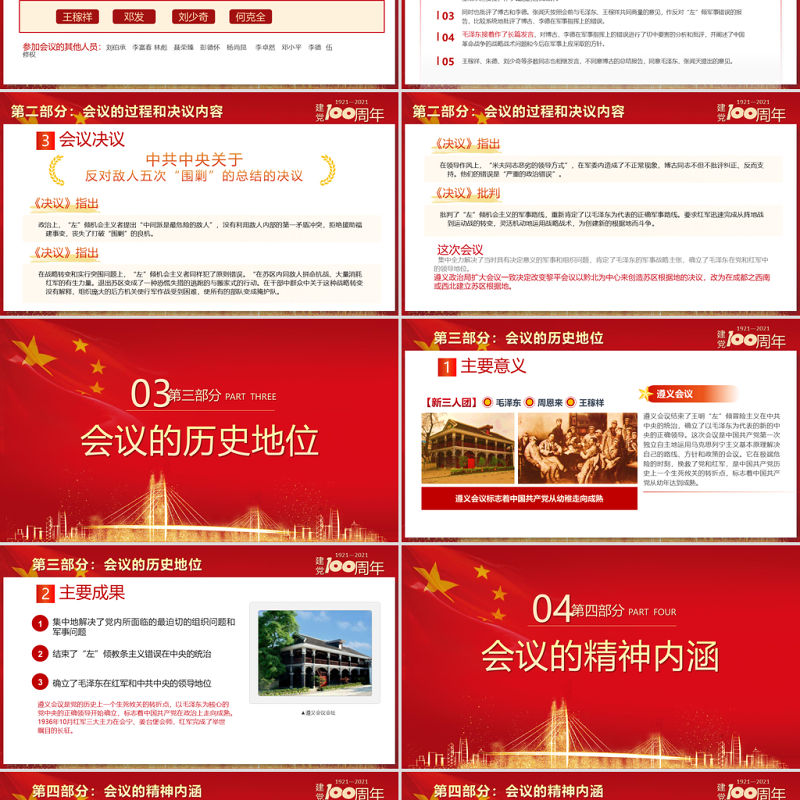 2021黨史學習遵義會議PPT建黨100周年黨支部建設黨政活動黨史知識黨性教育輔導黨課 PPT模板