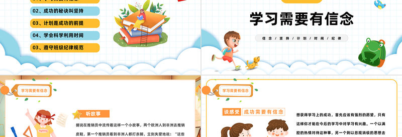 01、學習需要有信念目錄CONTENTS02、成功的秘訣叫堅持03、計劃是成功的前提04、學會科學利用時間03、遵守班級紀律規范
