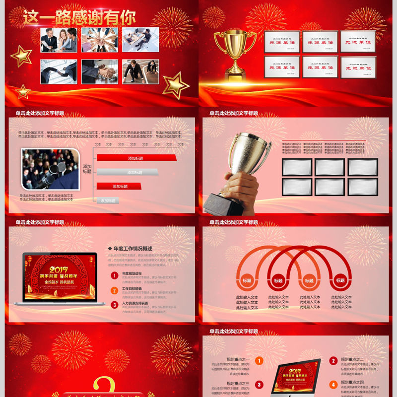 原創2020紅色扁平化人事行政年終總結工作總結ppt模板包含