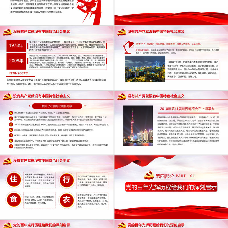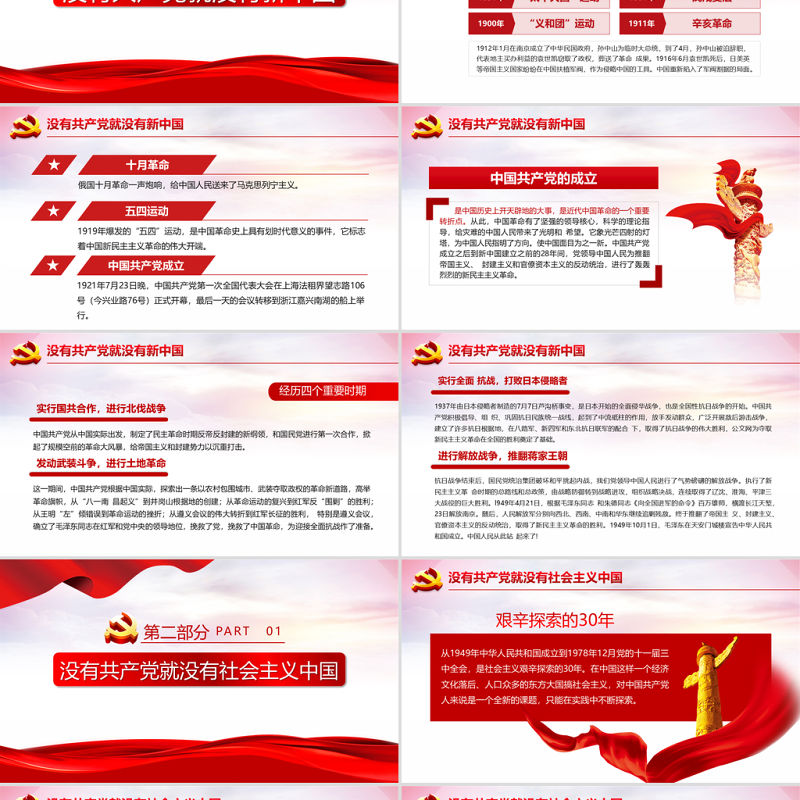 前言導(dǎo)讀1921年中國共產(chǎn)黨成立時,僅有53名黨員,現(xiàn)在已經(jīng)發(fā)展為具有8500萬黨員的世界上最大的政黨。中國共產(chǎn)黨 100年的歷史,就是為中華民族的獨(dú)立、解放、繁榮、富強(qiáng),為中國人民的自由、民主、幸福而不懈奮斗的歷史。這100年,是馬克思主義基本原理同中國具體實(shí)際 相結(jié)合、不斷推進(jìn)馬克思主義中國化的100年;是中國結(jié)束近代飽受屈辱的歷史和長年戰(zhàn)亂的局面、戰(zhàn)勝各種困難和風(fēng)險頑強(qiáng)奮進(jìn)的100年;是中國人民掌握自己的 命運(yùn)、意氣風(fēng)發(fā)地建設(shè)新生活的100年;是我們黨經(jīng)受住各種風(fēng)浪考驗(yàn)、不斷發(fā)展壯大、不斷開創(chuàng)各項事業(yè)新局面的100年。 2021年是中國共產(chǎn)黨成立100周年