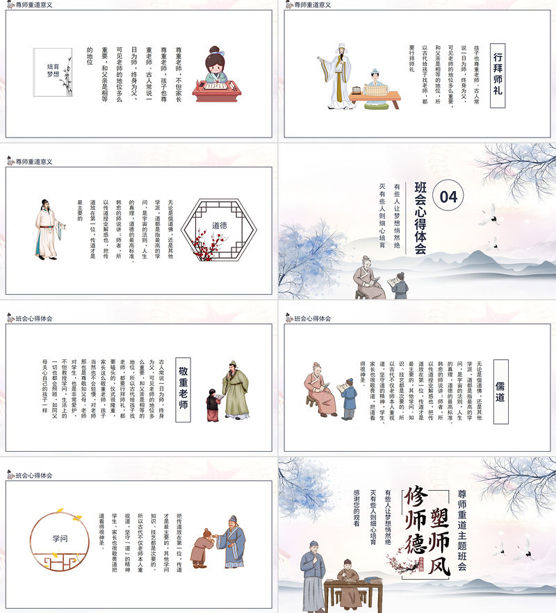 2021修師德塑師風(fēng)PPT傳統(tǒng)水墨中國風(fēng)尊師重教感恩教師節(jié)課件模板