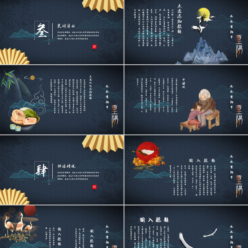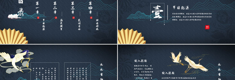 綠色山水畫背景中國風中國傳統文化動態PPT模版包含