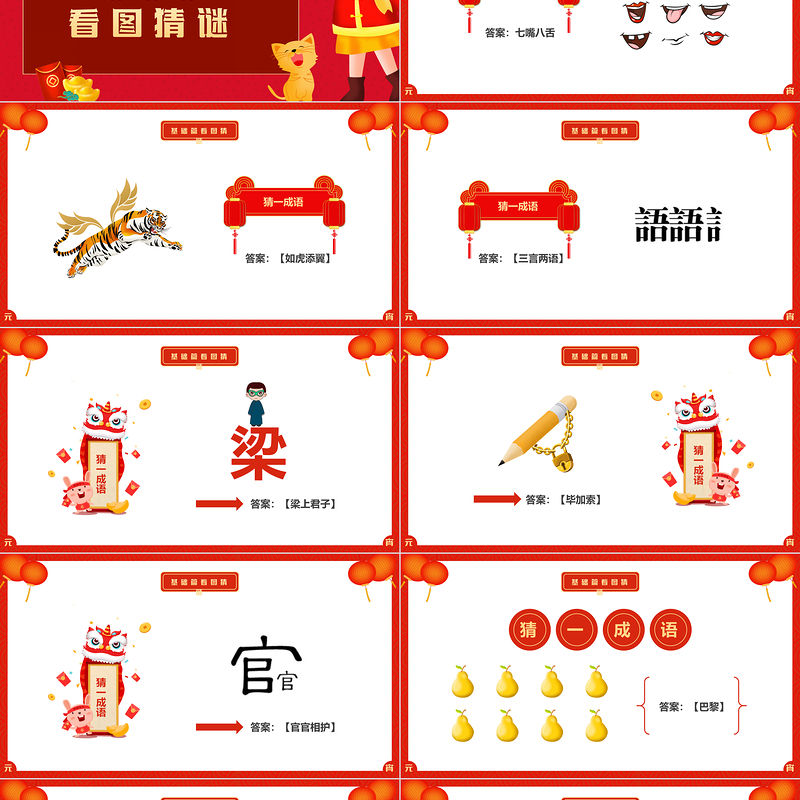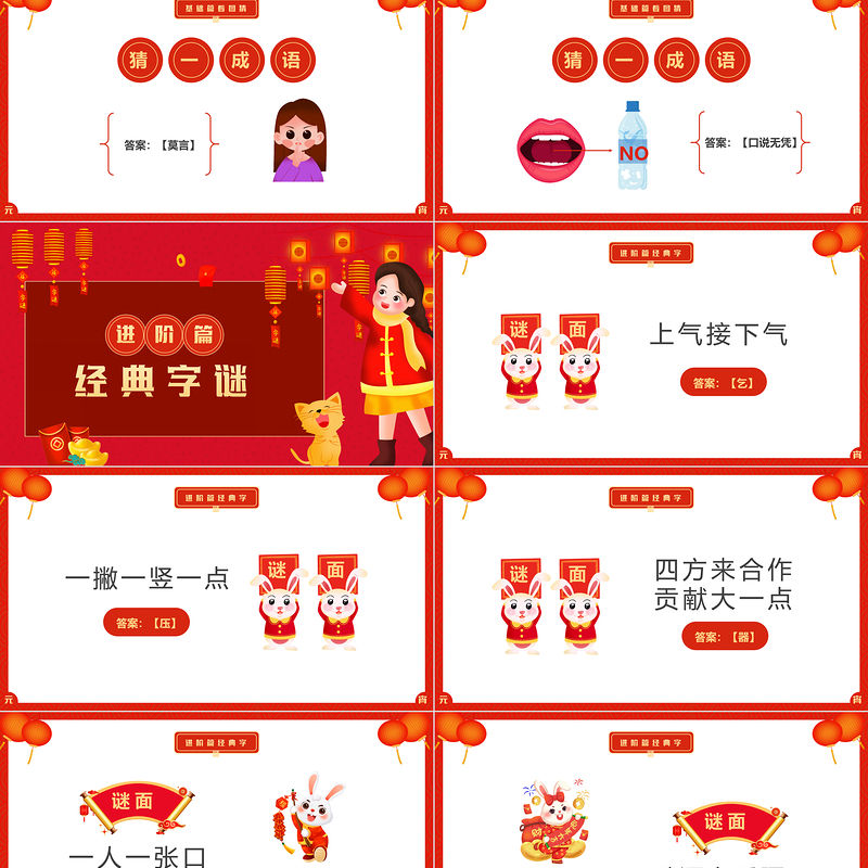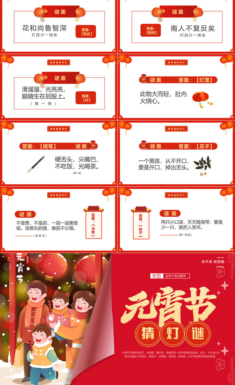 元宵節猜燈謎PPT精美創意團團圓圓鬧元宵下載 Array