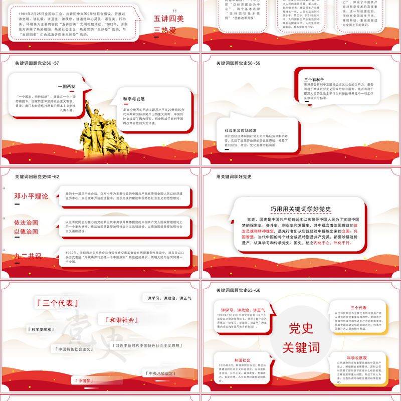 2021 回顧百年黨史 100個(gè)關(guān)鍵詞(下) PPT 慶祝建黨100周年 專題系列 黨課 課件模板 Array