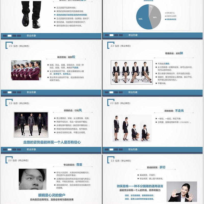 2.3 儀態(tài)(舉止神態(tài))儀態(tài)即是你的身體語(yǔ)言,儀態(tài)為什么重要呢,請(qǐng)看儀態(tài)在信息傳播中的重要程度。