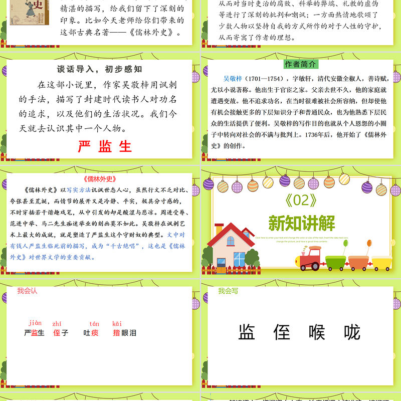 課堂小結作家吳敬梓用辛辣的筆觸為我們塑造了這樣一個吝嗇鬼形象,有著較強的諷刺意味。其中,最值得一提的就是作者抓住嚴監生臨死前一個非常經典的動作——兩個指頭,展開細致的描寫,把吝嗇鬼的形象刻畫得栩栩如生,讓我們過目不忘。