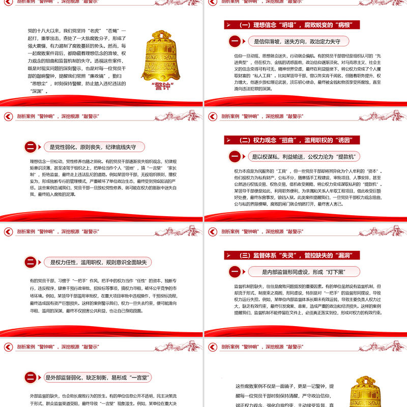 監督機制的缺失,往往是腐敗問題頻發的重要因素。有的單位雖然設有監督機制,但卻流于形式,制度束之高閣,形同虛設,特別是對“一把手”的監督形同擺設,導致權力運行失控。例如,某單位內部監督體系長期未有效運轉,導致主要負責人權力過大,缺乏有效約束,最終引發窩案、串案,造成嚴重的政治和經濟損失。這樣的案例提醒我們,監督機制不能停留在文件上,必須真正落實到位,形成對權力的有效約束。(三)監督體系“失靈”,管控缺失的“漏洞”剖析案例“警鐘響”,深挖根源“敲警示”