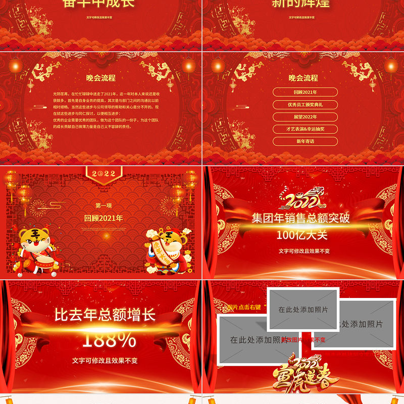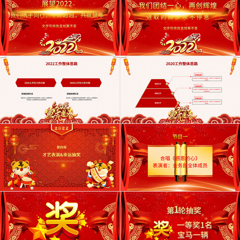 2022寅虎迎春PPT紅色喜慶虎年年終頒獎典禮誓師大會開門紅企業年會模板