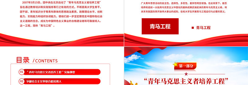 添加標題內容Lorem ipsum dolor sit amet, please add your text here, lorem ipsum dolor sit amet“青年馬克思主義者培養工程”的重點培養對象是大學生骨干、共青團干部和青年知識分子。大學生骨干主要包括各級各類學生干部、學生社團干部、學生黨員和入黨積極分子、理論學習骨干及在學術科技、文化體育等方面成績突出的優秀學生;共青團干部主要指各級共青團組織的專職干部;青年知識分子主要指在人文社會科學和自然科學領域從事科學研究、技術開發應用、教學推廣等工作的青年高級知識分子。 “青年馬克思主義者培養工程”實施綱要