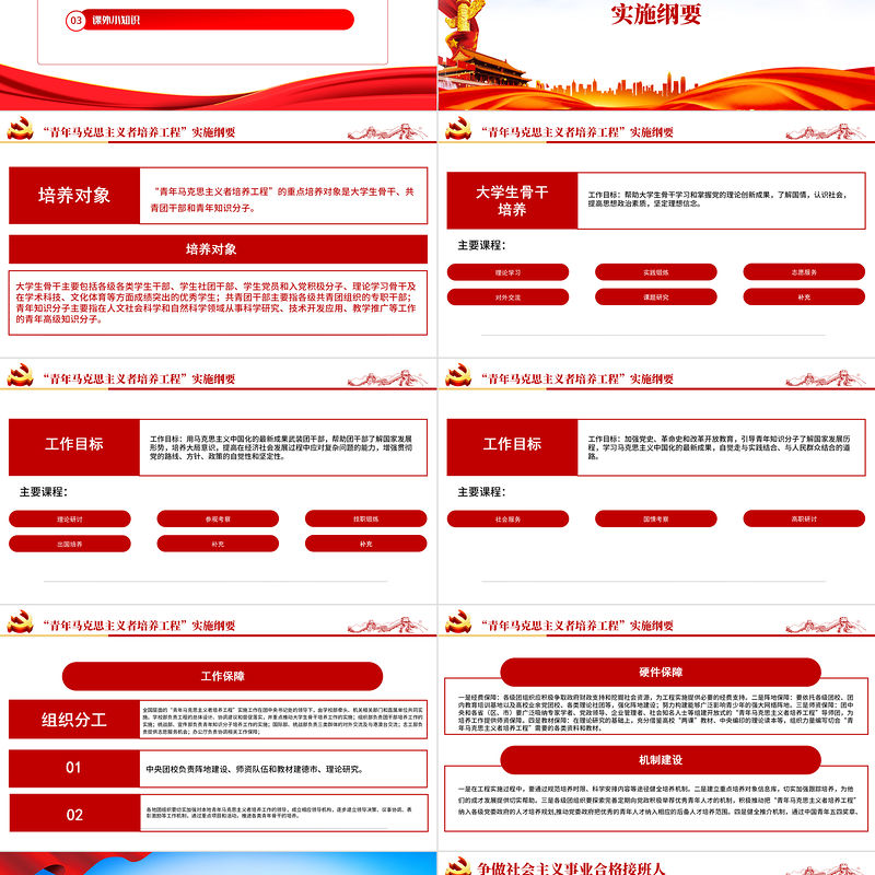 添加標題內容Lorem ipsum dolor sit amet, please add your text here, lorem ipsum dolor sit amet工作目標:加強黨史、革命史和改革開放教育,引導青年知識分子了解國家發展歷程,學習馬克思主義中國化的最新成果,自覺走與實踐結合、與人民群眾結合的道路。主要課程:“青年馬克思主義者培養工程”實施綱要